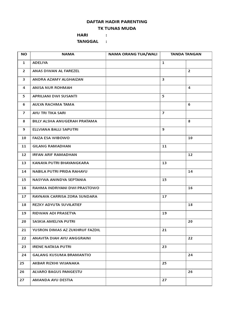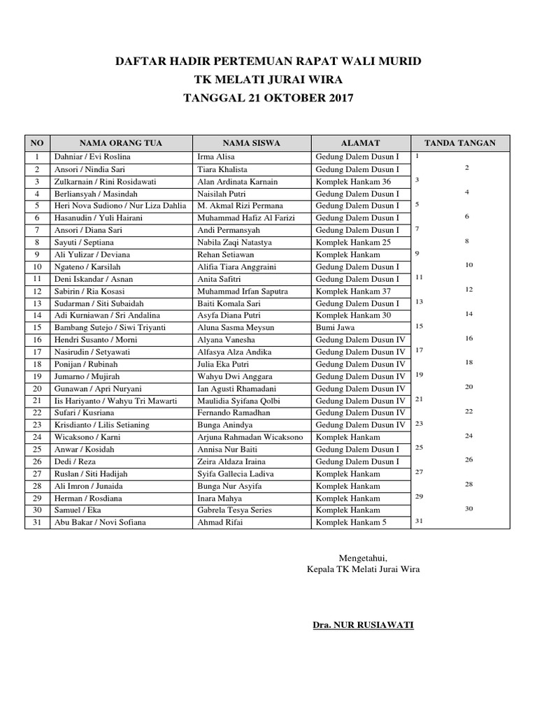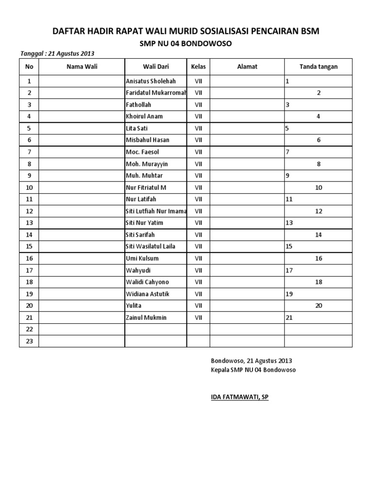 Daftar Hadir Rapat Wali Murid - Daftar Hadir Pembagian Raport / Jun 03, 2017 · contoh format daftar hadir rapat kelulusan siswa tahun 2017.. Daftar hadir rapat wali murid sosialisasi pencairan bsm smp nu 04 bondowoso tanggal : More images for daftar hadir rapat wali murid » Berita acara rapat november 2019 71. Daftar hadir rapat wali murid may 2020 5. No nama peserta utusan tandatangan 1.