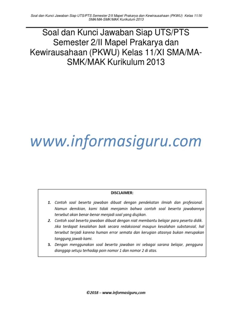 Soal dan jawaban pat prakarya dan kewirausahaan kelas xi sma/ma semester 2.